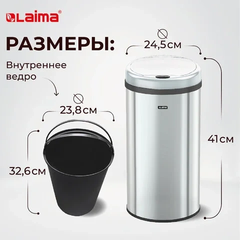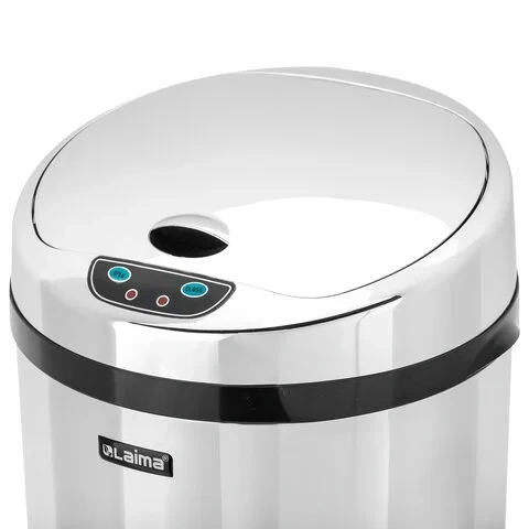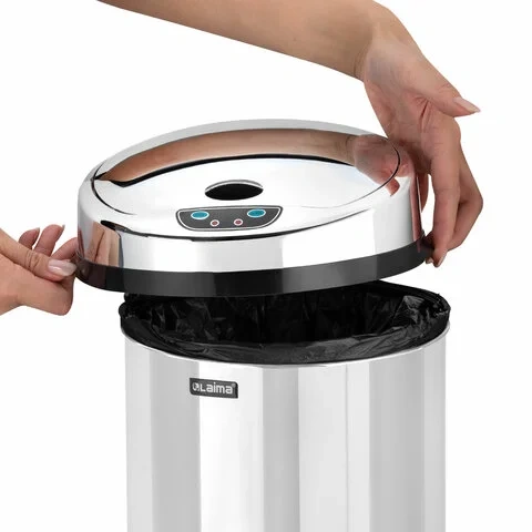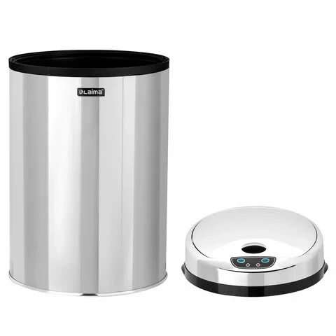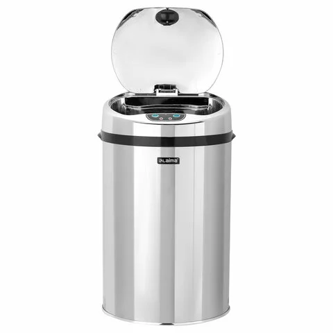 Ведро для мусора сенсорное 12л, нержавеющая сталь, зеркальная крышка, питание от 4-х батареек AA (не