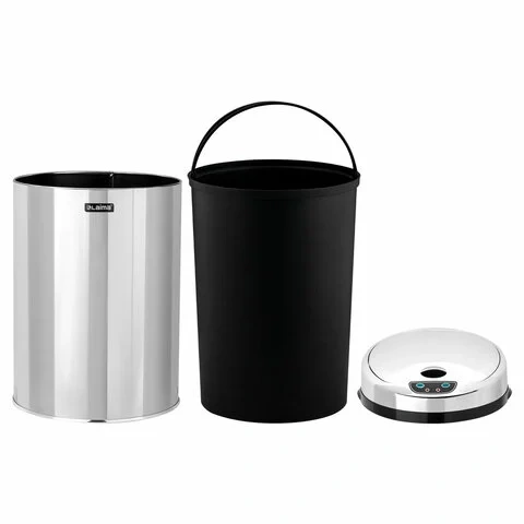 Ведро для мусора изготовлено из нержавеющей стали, обладающей высокой устойчивостью к коррозии и износостойкостью. Поверхность ведра и крышки – зеркальная. Крышка с хромированным покрытием выполнена из прочного ABS-пластика.