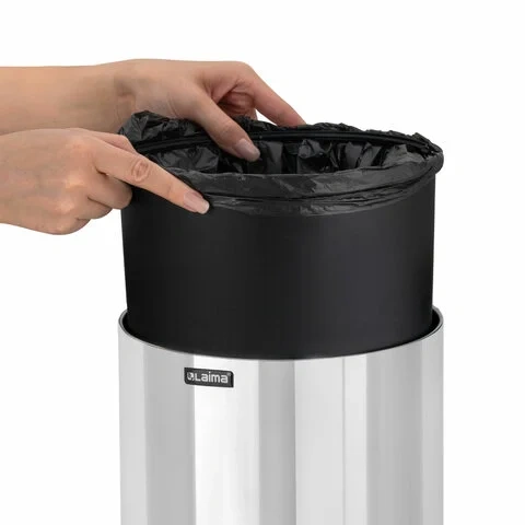Внутрь ведра помещается съёмное пластиковое ведро с двумя ручками, изготовленное из PP. Ведро можно использовать как с пакетом для мусора, так и без него. При использовании пакета для мусора сначала необходимо снять крышку с ведра, поместить пакет внутрь, расправить его края таким образом, чтобы при помещении крышки на место она надежно прижимала края пакета.