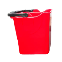 Ведро выполнено из прочного пластика и предназначено для уборки и перемещения жидкостей. Оно имеет квадратную форму с удобным носиком для переливания продуктов и оснащено металлической ручкой, крепящейся к коротким сторонам ведра для минимизации расплескивания жидкости при переноске.