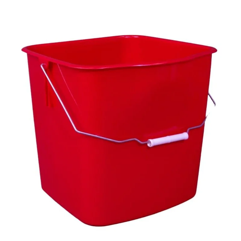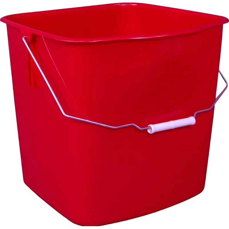 Ведро выполнено из прочного пластика и предназначено для уборки и перемещения жидкостей. Оно имеет квадратную форму с удобным носиком для переливания продуктов и оснащено металлической ручкой, крепящейся к коротким сторонам ведра для минимизации расплёскивания жидкости при переноске.
