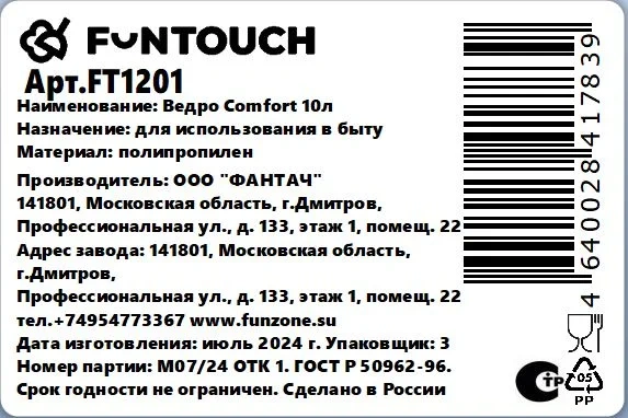 Ведро Funtouch Comfort, 10л