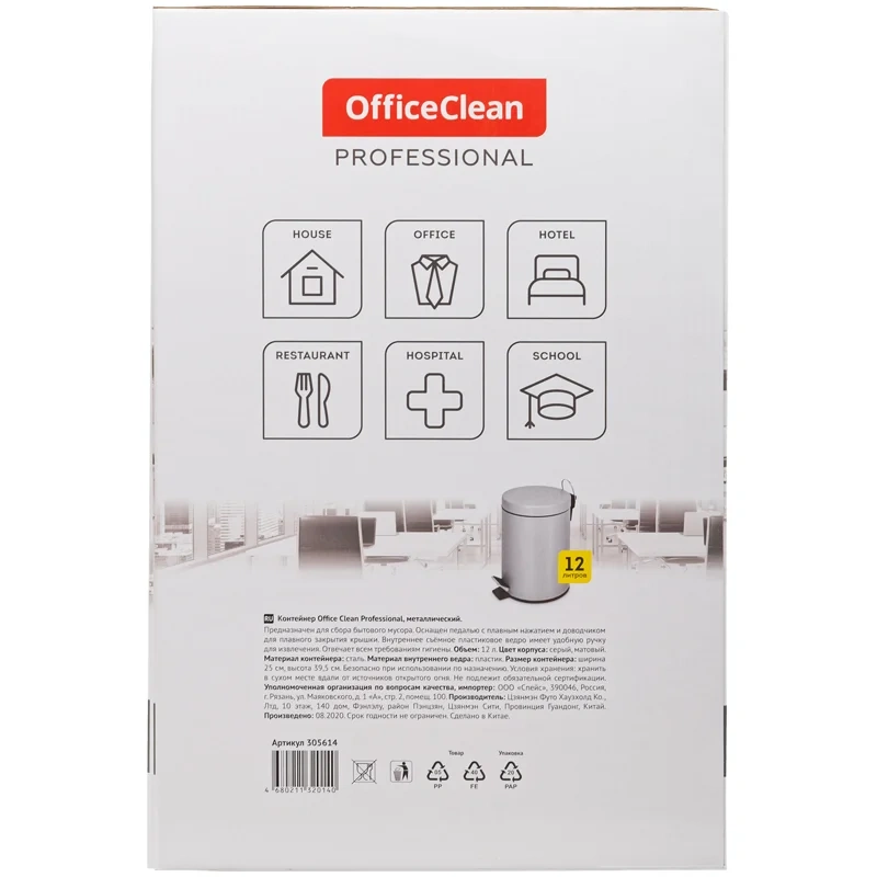 Предназначен для сбора бытового мусора. Оснащен педалью с плавным нажатием, плавным доводчиком для закрытия крышки. Внутреннее съёмное пластиковое ведро имеет удобную рукоятку для извлечения. Отвечает всем требованиям гигиены. Рекомендуемый объем мешка 20л.