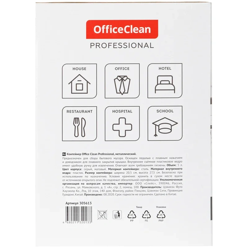 Предназначен для сбора бытового мусора. Оснащен педалью с плавным нажатием, плавным доводчиком для закрытия крышки. Внутреннее съёмное пластиковое ведро имеет удобную рукоятку для извлечения. Отвечает всем требованиям гигиены. Рекомендуемый объем мешка 10л.