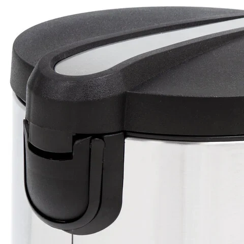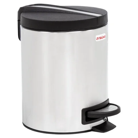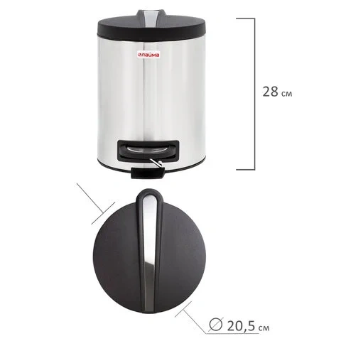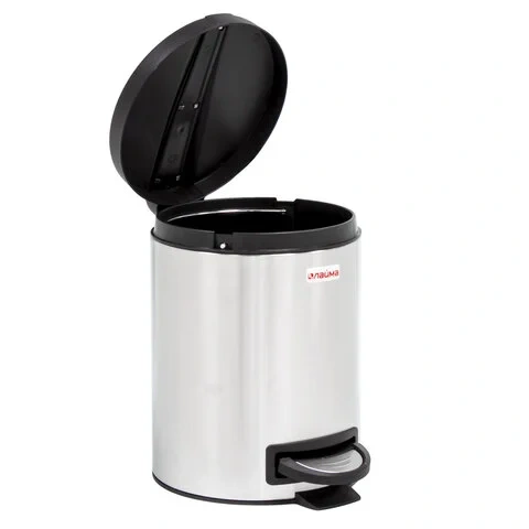 5 л - подходящий объем при небольшой проходимости. Оборудовано педалью для открывания. Крышка плотно прилегает, тем самым препятствуя распространению запахов. Внутреннее съемное пластиковое ведро имеет удобную рукоятку для извлечения. Изготовлено из нержавеющей стали со специальным антикоррозийным покрытием, что обеспечивает максимально долгий срок службы. Ведро устойчиво благодаря антискользящему основанию. Объем рекомендуемого мешка - 30 л. Контейнер для мусора в стальном цвете с матовым покрытием имеет компактные размеры (28х20,5х20,5 см) и отлично впишется в любой интерьер.