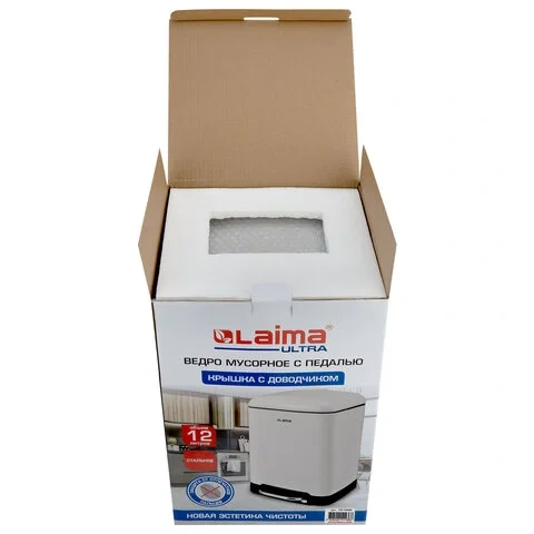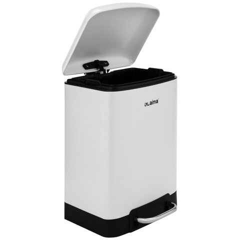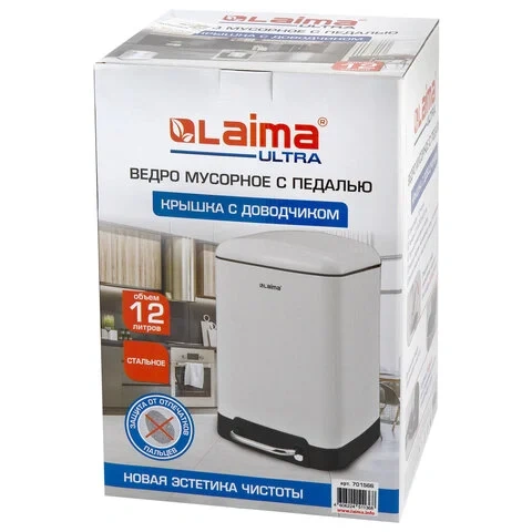 Ведро мусорное с педалью 12 л, крышка с доводчиком, белое матовое, металл, LAIMA ULTRA, 701566
