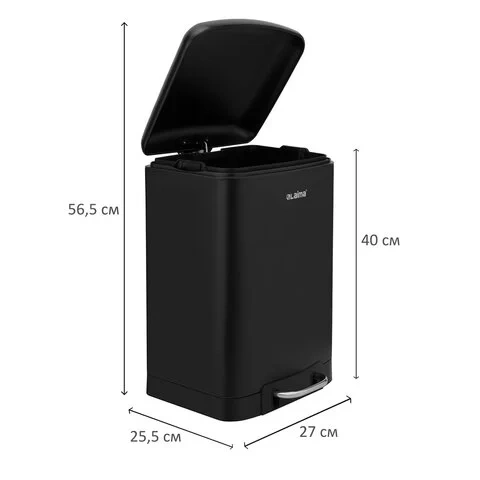 Оборудовано удобной педалью для открывания, позволяя вам выбрасывать мусор, не прикасаясь к ведру. Благодаря встроенному доводчику крышка закрывается плавно и бесшумно. Крышка плотно прилегает к ведру, препятствуя распространению запахов.Внутреннее ведро и размеры