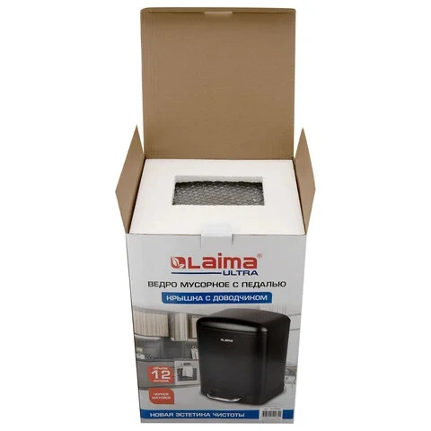 Отзывы о «Ведро мусорное с педалью 12 л, крышка с доводчиком, черное матовое, металл, LAIMA ULTRA, 701565»