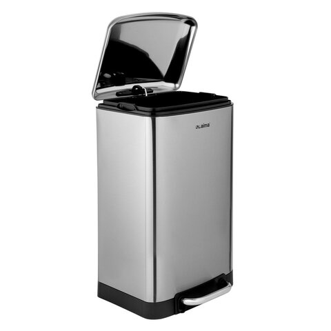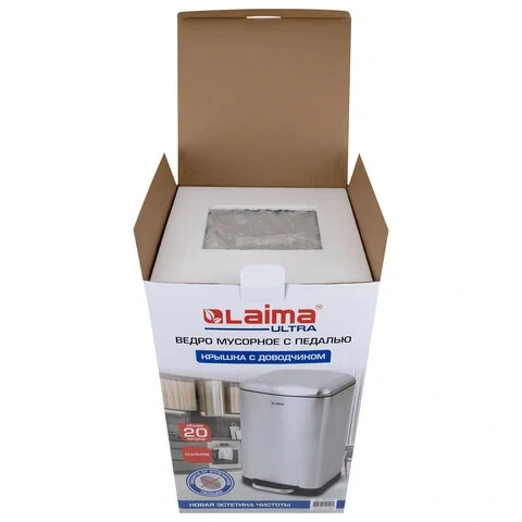 Корпус и крышка ведра изготовлены из матовой нержавеющей стали SS410, на которой не остаются отпечатки пальцев. Ведро устойчиво благодаря антискользящим вставкам. Оборудовано удобной педалью для открывания, позволяя вам выбрасывать мусор, не прикасаясь к ведру. Благодаря встроенному доводчику крышка закрывается плавно и бесшумно. Крышка плотно прилегает к ведру, препятствуя распространению запахов. Внутреннее съемное пластиковое ведро на 20 л имеет специальное отверстие на задней стенке для фиксации мусорного пакета.