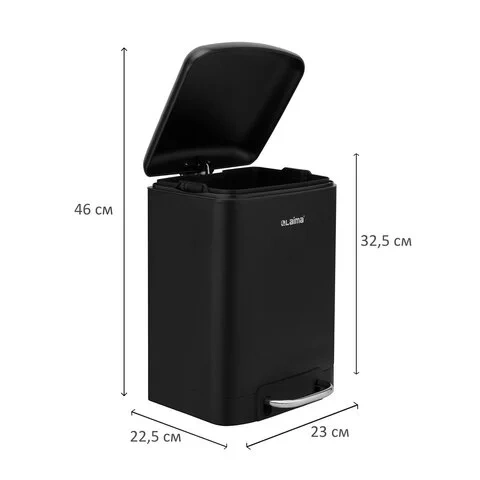 Мусорное ведро в черном цвете с матовым покрытием имеет компактные размеры (32,5х22,5х23 см) и отлично впишется в любой интерьер!