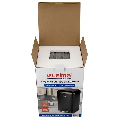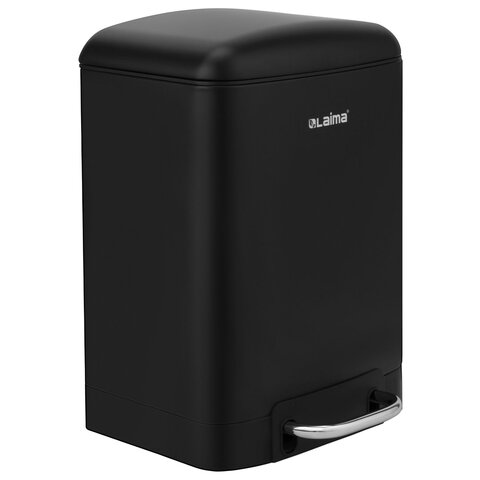 Ведро мусорное с педалью 6 л, крышка с доводчиком, черное матовое, металл, LAIMA ULTRA, 701564