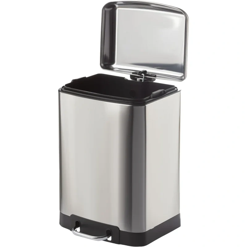 Ведро мусорное с педалью и доводчиком Luscan 12л,матов., прямоуг,нерж сталь