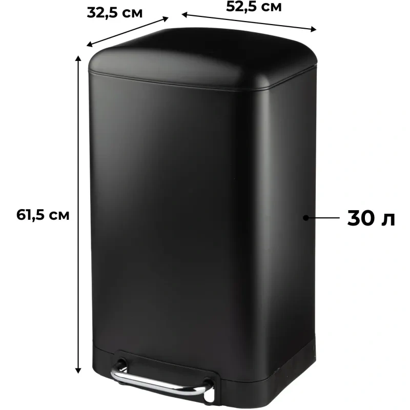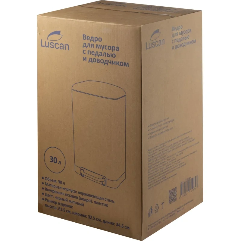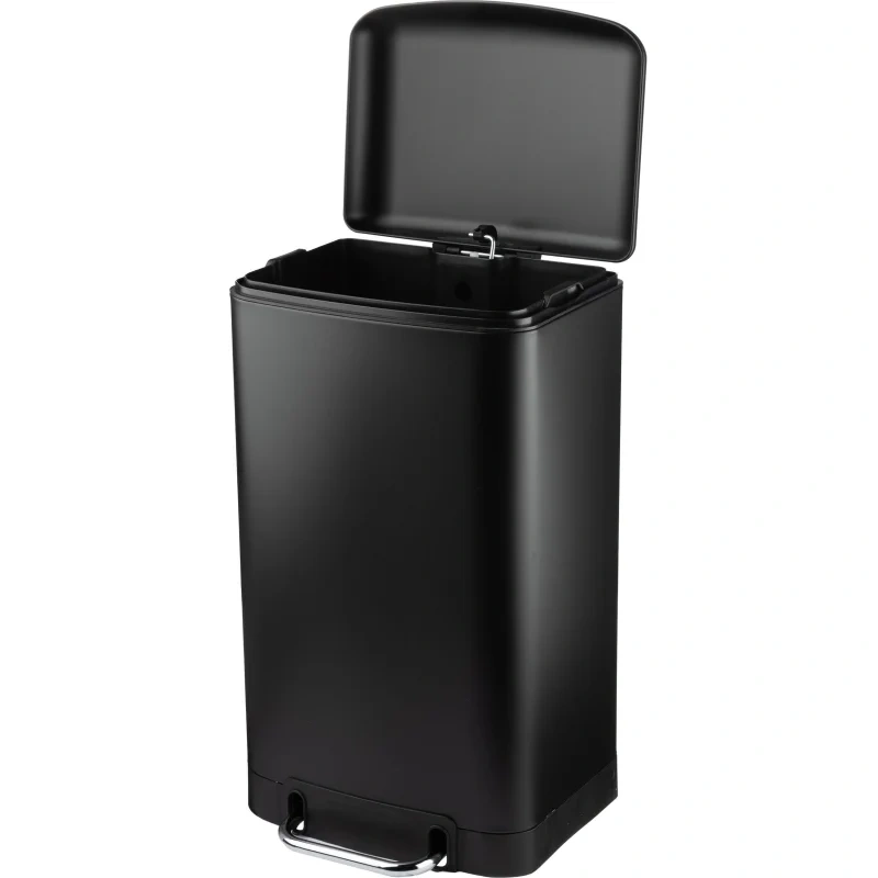 Ведро мусорное с педалью и доводчиком Luscan 30л,черное,прямоуг,металл