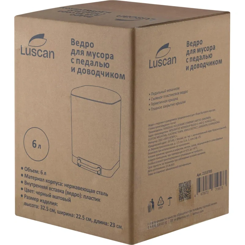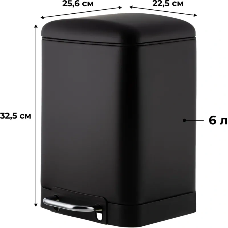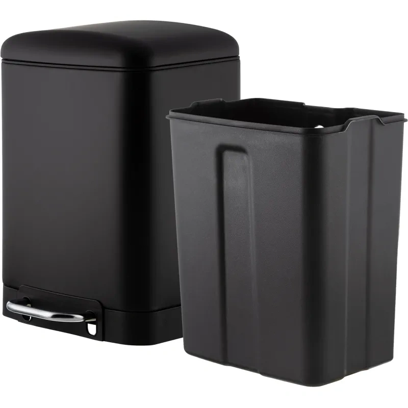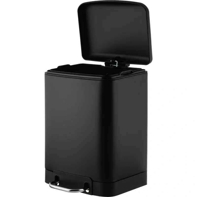 Ведро мусорное с педалью и доводчиком Luscan 6л, черное,прямоуг,металл