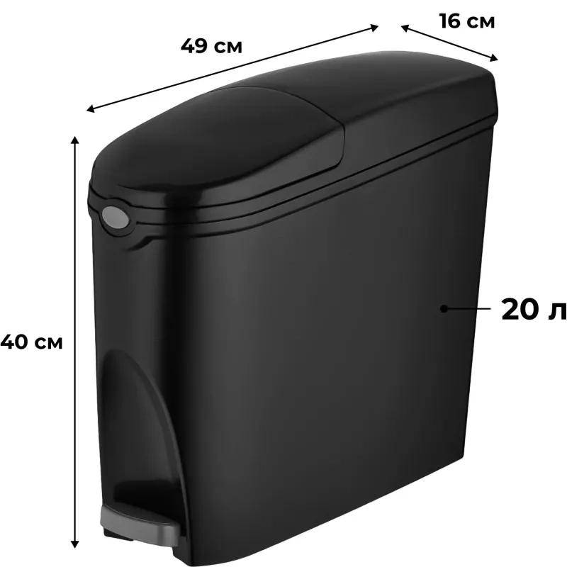 Ведро мусорное с педалью Luscan Slim 20 л, черное, пластик