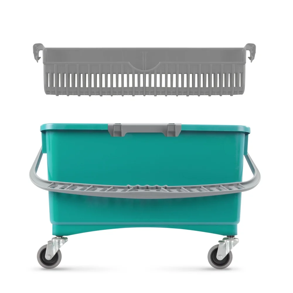 20-литровое ведро со сжимателем и держателем оконных скребков. Система очистки стекла с флисом и скребком. Идеально подходит для профессионального использования.