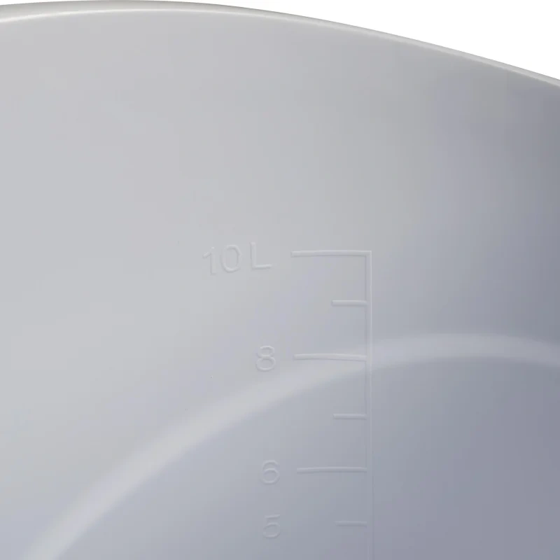 Ведро имеет специальный носик для быстрого слива без разбрызгивания и уступ на дне для пальцев для удобного хвата.