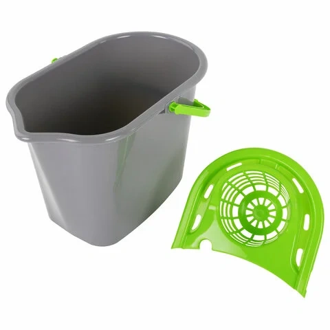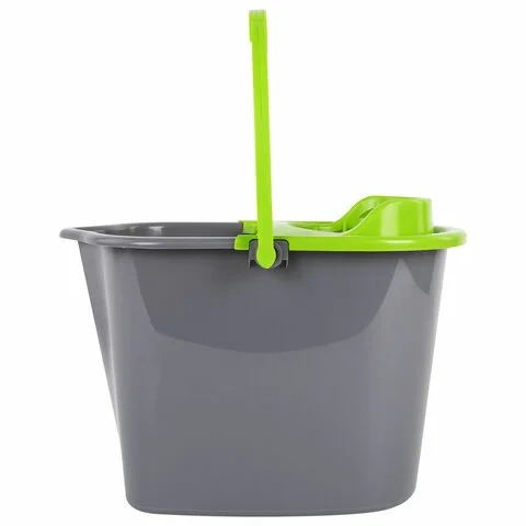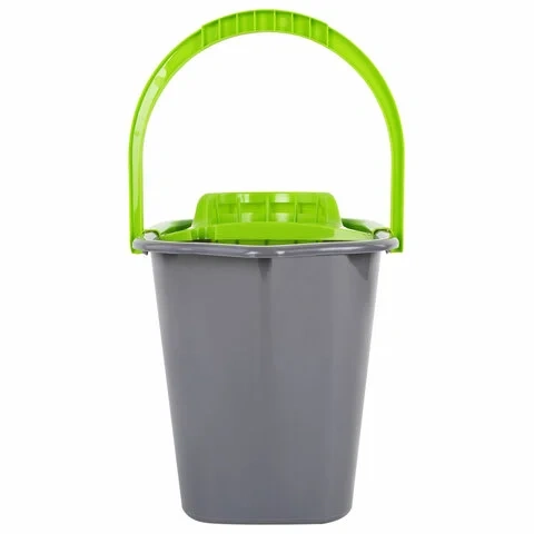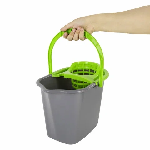 Пластиковое прямоугольное ведро объемом 10 литров со вставкой. Ручка и отжим выполнены из прочного пластика, прослужат долго. На дне имеется углубление, за которое ведро удобно придерживать, чтобы аккуратно слить воду. Носик облегчает слив воды. Компактный размер ведра обеспечивает его удобное хранение.