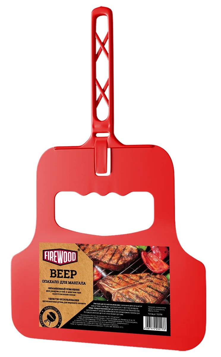 Веер-опахало для мангала Firewood, 32 x 21 см предназначен для быстрого безопасного раздувания углей и огня в жаровне, кострище, печке. Изделие обеспечит комфортный отдых на природе, позволит отгонять мух и других насекомых, предотвратит подгорание шашлыка. Компактный аксессуар выполнен из мягкого полимерного материала, который устойчив к воздействию жара и годами сохраняет привлекательный внешний вид. Эргономичная ручка и отверстие для хвата позволяют быстро нагнетать воздух, необходимый для поддержания огня и полного прогорания углей. Веер можно использовать и не по назначению, например, для нарезки овощей, если под рукой не оказалось разделочной доски. Хранить изделие рекомендуется в прохладном, защищенном от прямых лучей солнца месте.