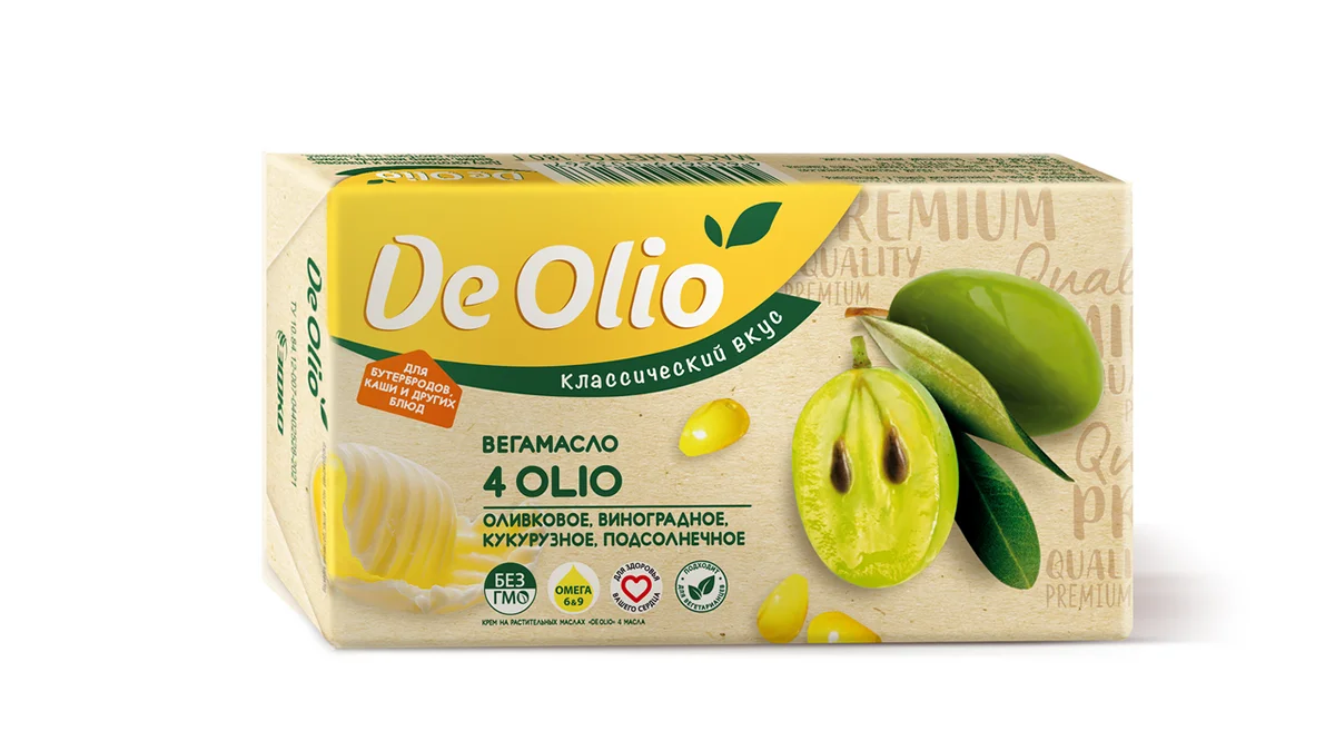 Вегамасло De Olio 4 Olio - уникальная новинка среди необычных вкусов линейки De Olio. Уникальность вегамасла De Olio 4 OLIO заключается в том, что оно обладает нежным, классическим и привычный для всех сливочным вкусом. Вегамасло De Olio обогащено полезными жирными кислотами - ОМЕГА 6-9, которые положительно влияют на функционирование всех органов в организме человека, в том числе способствуют поддержанию здоровья сердца. При этом в составе вегамасла отсутствуют продукты животного происхождения. Уникальный продукт, который обладает нежным, классическим и привычным для всех сливочным вкусом, но при этом не содержит в составе продуктов животного происхождения. Вегамасло De Olio обогащено полезными жирными кислотами — омега 6-9, которые положительно влияют на функционирование всех органов в организме человека, в том числе способствуют поддержанию здоровья сердца. De Olio 4 масла - идеальный продукт для тех, кто является сторонником здорового питания или по каким-либо причинам придерживается исключительно растительной диеты.