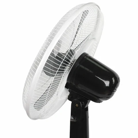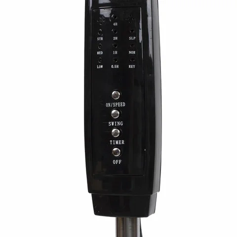 Вентилятор дополнен таймером на 7,5 часов и удобными указателями на корпусе, отображающими текущие характеристики. Допускается удобное регулирование высоты стойки. Лопасти вентилятора диаметром 40 см закрыты надежной защитной решеткой. Устройство дополнено мощным мотором. Прибор высотой 1,25 м весит 4,4 кг.