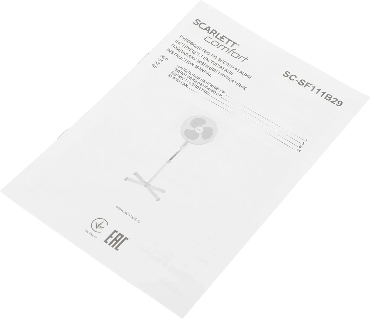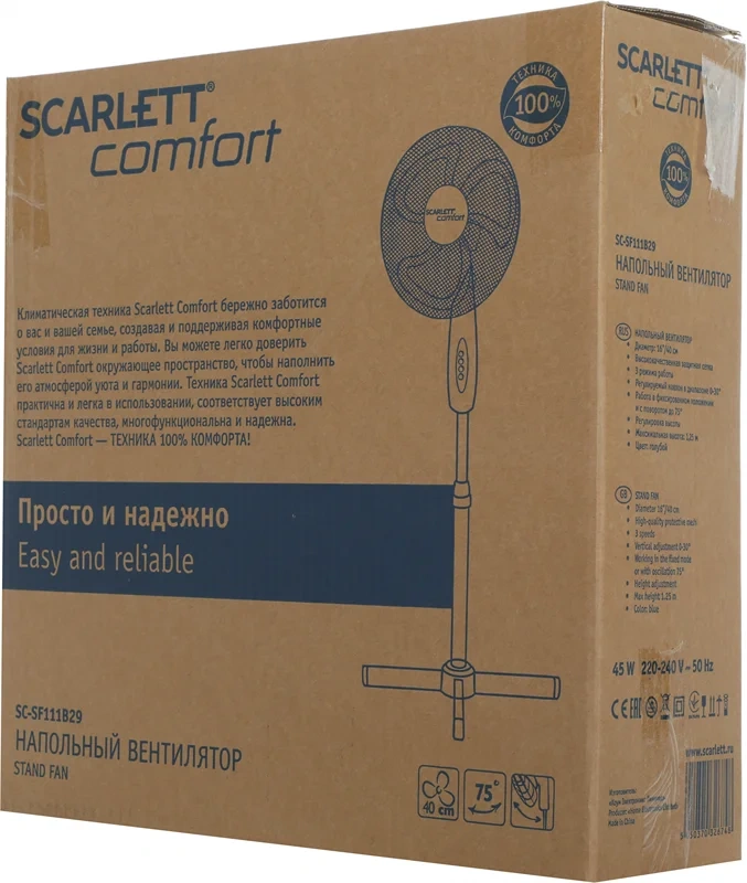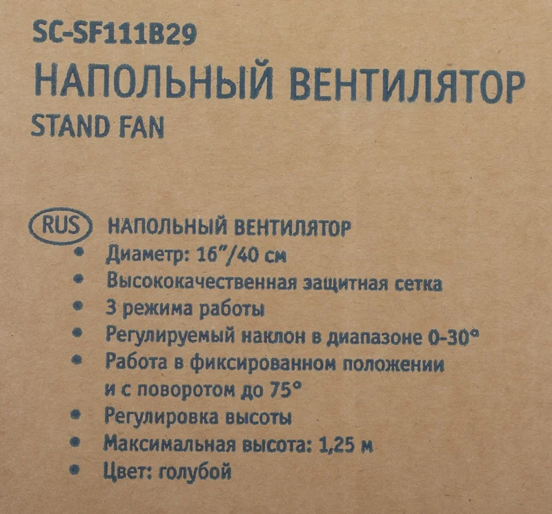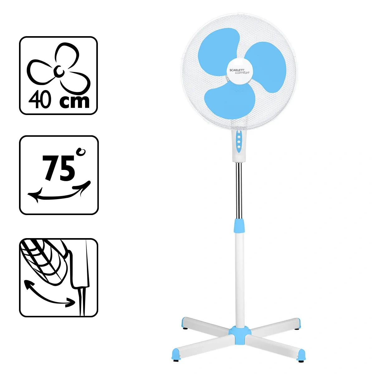 Вентилятор напольный Scarlett SC-SF111B29 белый/голубой, 45Вт, 3 скорости