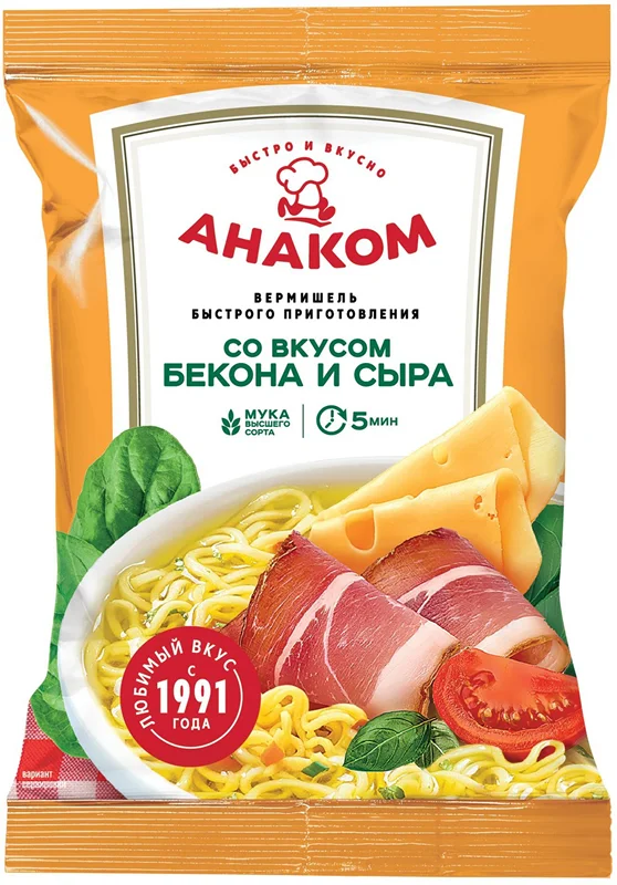 Вермишель быстрого приготовления Анаком с беконом и сыром, 60г