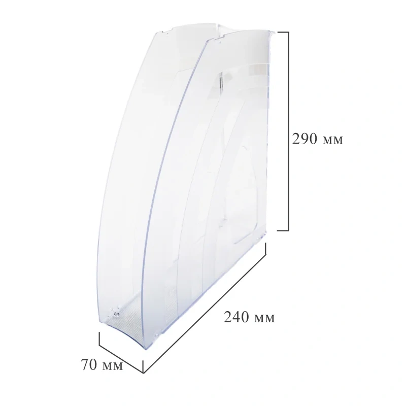 Вертикальный накопитель Attache выполнен из качественного прозрачного пластика. Оригинальный дизайн лотка с сочетанием матовой и глянцевой поверхностей освежит Ваш рабочий стол. Накопитель позволяет удобно хранить документы и печатную продукцию формата А4. Не занимает много места на рабочем столе. Имеет 1 отделение шириной 70 мм. Размеры изделия (ДxШxВ): 240x70x290 мм. Вес: 264 г. Обладает устойчивой конструкцией, благодаря которой является удобным для хранения объемных документов. Этикетки для маркировки в комплект поставки не входят. Товар поставляется в собранном виде.