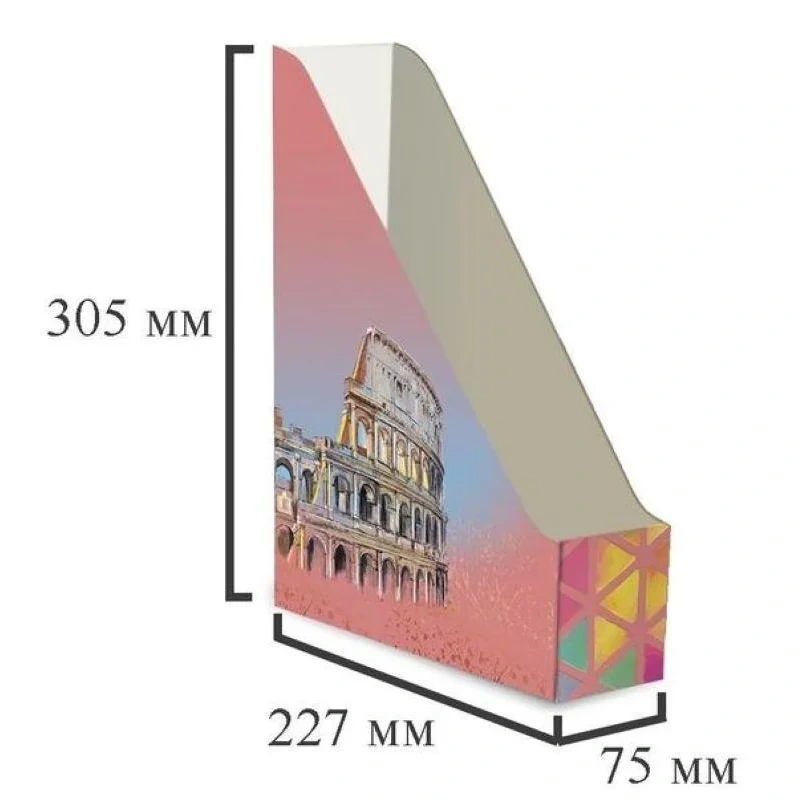 Вертикальный накопитель Attache Selection Travel изготовлен из качественного плотного картона красного цвета. Картон покрыт двусторонней ламинацией, что повышает надежность, эстетичность и срок службы накопителя. Красочный рисунок на боковых стенках лотка создаст особое настроение на Вашем рабочем месте. Накопитель позволяет удобно хранить документы, брошюры, каталоги и другую печатную продукцию формата А4. Имеет 1 отделение шириной 75 мм. Размеры изделия (ДxШxВ): 227x75x305 мм. Вес: 100 г. Лоток станет отличным помощником для сотрудников организаций, работа которых сопряжена с обработкой большого объема бумажной документации. Сочетается с другими изделиями коллекции Travel. Конструкция требует самостоятельной сборки. Возможно многократное сложение и разложение. Этикетки для маркировки в комплект поставки не входят. Поставляется упаковкой по одной единице.