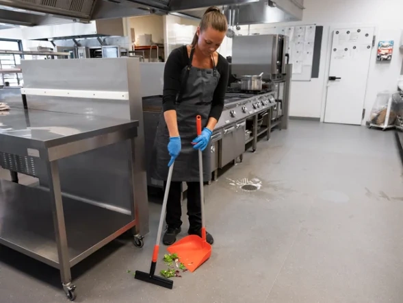 Совок и метла Vikan 330мм, средний ворс, вертикальный, оранжевый, 56667