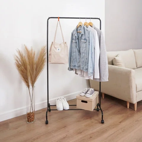 Железная перекладина способна разместить до 15 плечиков.