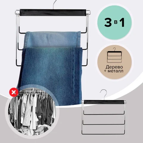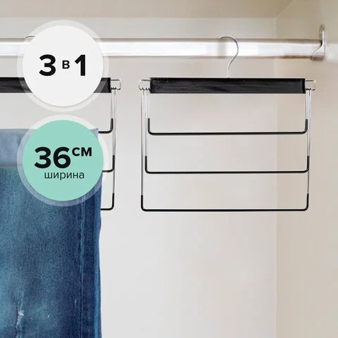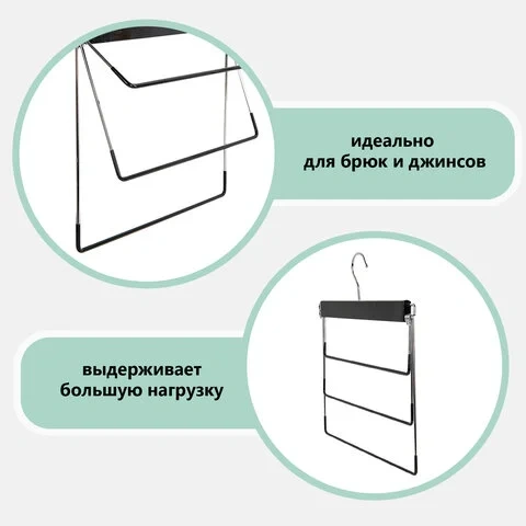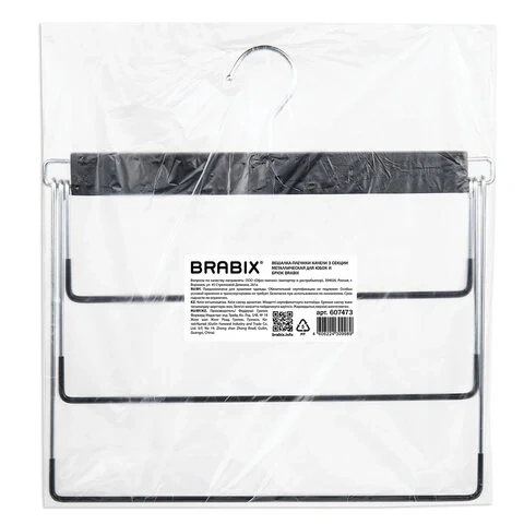 Вешалка-плечики качели 3 секции, металлическая, для юбок и брюк, ПВХ-покрытие, BRABIX, 607473