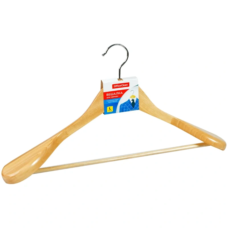Вешалка деревянная Office Clean с антискользящей перекладиной. Предназначена для бережного хранения одежды. Изготовлена из натурального дерева. Лакированная, с невыкручивающимся крючком.