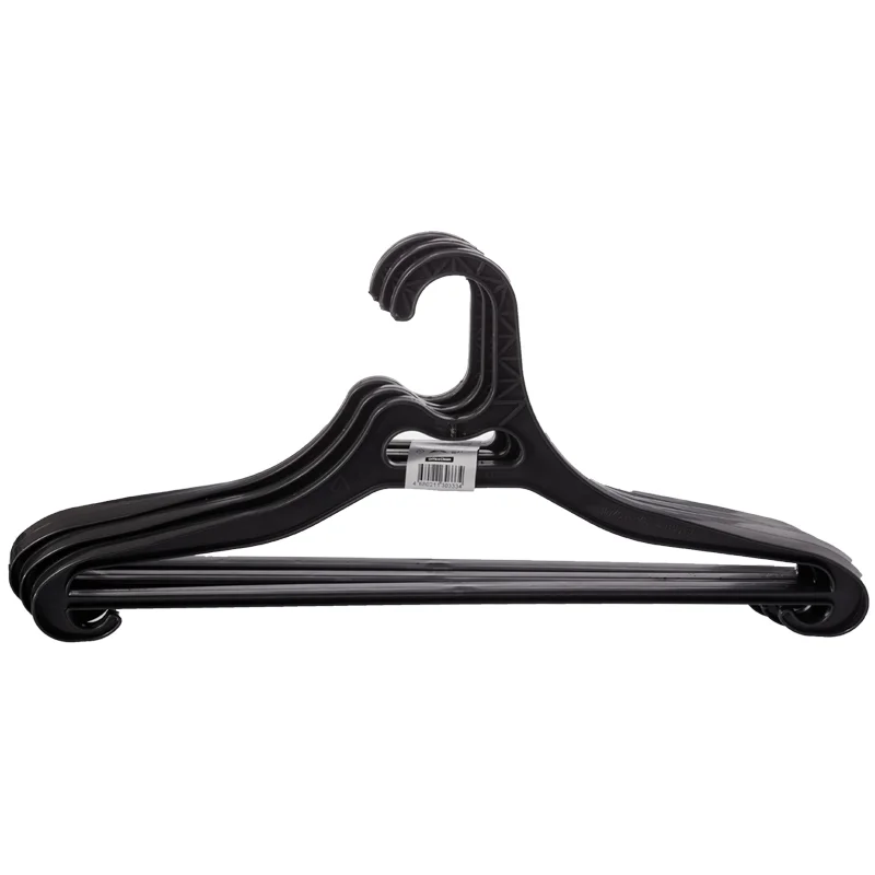 Вешалка-плечики OfficeClean, набор 3шт, пластик, плоская, перекладина, крючки, 44см (р.48-52),черный