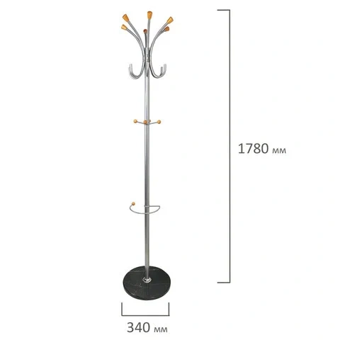Вешалка-стойка BRABIX 'CR-8121' на мраморном диске, металл, 6+4 крючка, цвет серебристый, 606437
