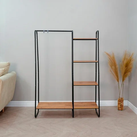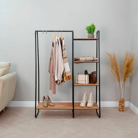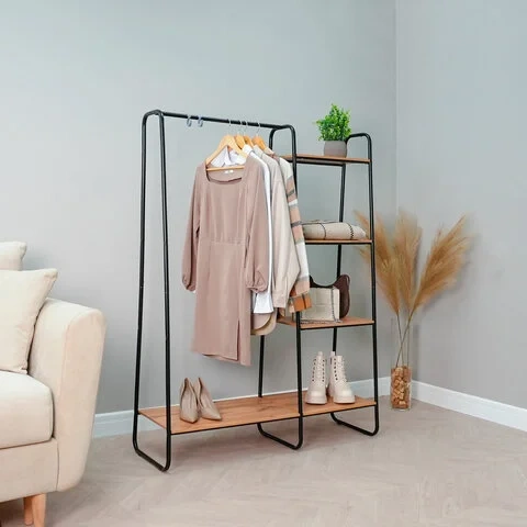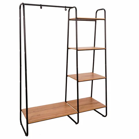 Вешалка-стеллаж 'Скандинавия-1', 1470х1100х385 мм, 5 полок, металл/ЛДСП, черная/дуб, ГСС1 Ч