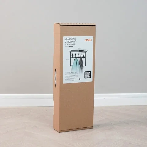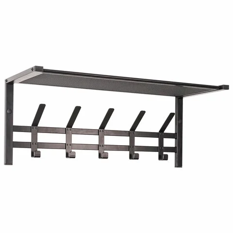 Вешалка настенная с полкой 'Торонто-21', 270х670х270 мм, 5 крючков, металл, черная, ВСПТ21 Ч