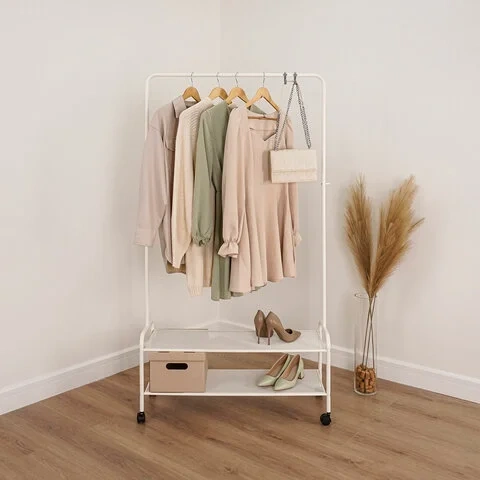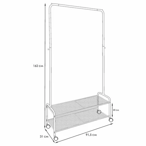 Вешалка для плечиков 'Валенсия-32М', 1620х915х300 мм, 2 полки, передвижная, металл, белая, ВГВ32М Б