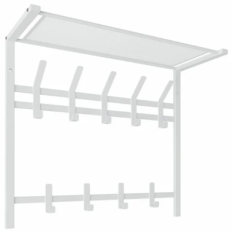 Вешалка настенная с полкой 2 яруса 'Торонто-22', 585х670х270 мм, 9 крючков, металл, белая, ВСПТ22 Б