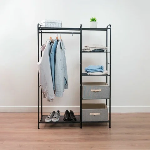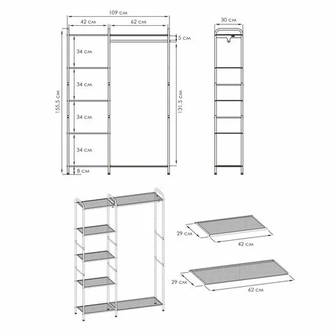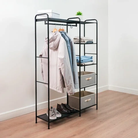 Вешалка-стеллаж 'Валенсия-1', 1555х1090х300 мм, 7 полок, металл, черная, ГСВ1 Ч