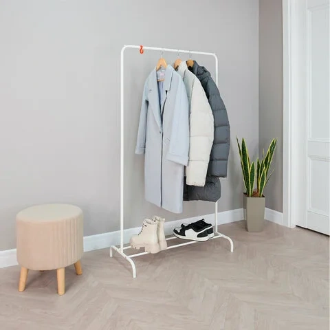Вешалка напольная белая с перекладиной, 110 x 30 x 5.5см