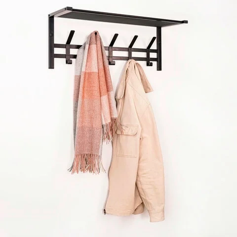 Вешалка настенная Sheffilton Стандарт, черная, 5 крючков, 280х600х110мм