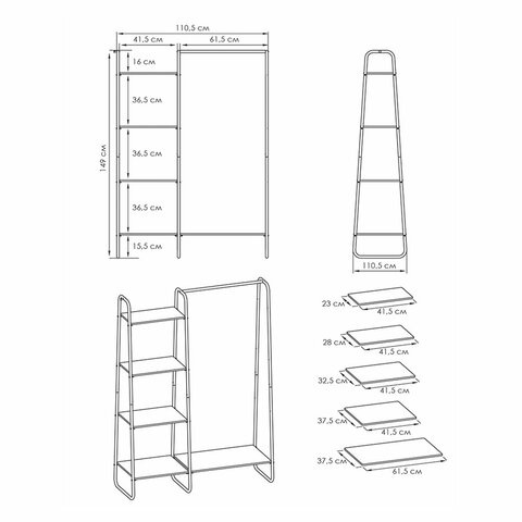 Вешалка-стеллаж 'Скандинавия-1', 1470х1100х385 мм, 5 полок, металл/ЛДСП, белая/дуб, ГСС1 Б