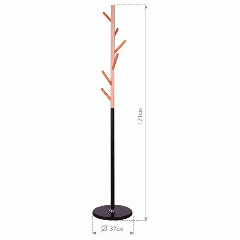 Вешалка-стойка напольная Brabix CR-1906 черный/дерево бук, 6 крючков, на мраморном диске