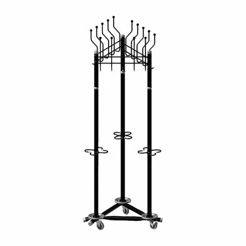 Вешалка на колесах на 15 крючков с держателем для зонтов 'Гардикс-3К', металл, черная