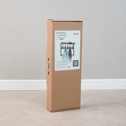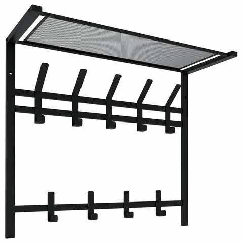 Вешалка настенная с полкой 2 яруса 'Торонто-22', 585х670х270 мм, 9 крючков, металл, черная, ВСПТ22 Ч