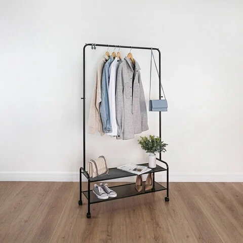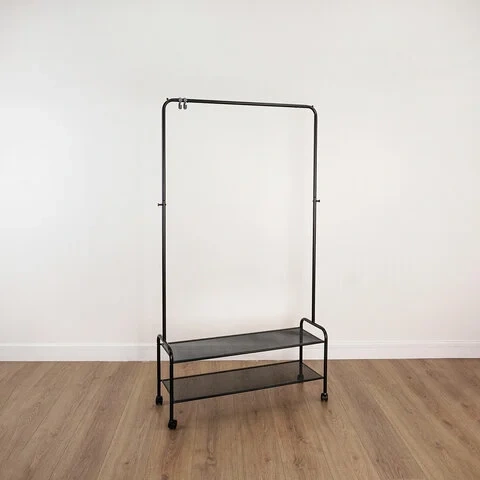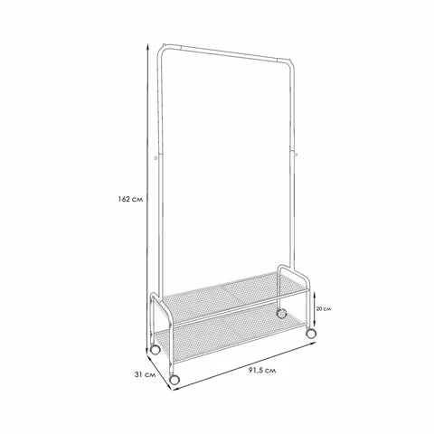 Вешалка для плечиков 'Валенсия-32М', 1620х915х300 мм, 2 полки, передвижная, металл, черная, ВГВ32М Ч