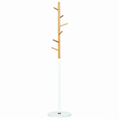 Вешалка-стойка напольная Brabix CR-1906 белый/дерево бук, 6 крючков, лен, защита 55-85%