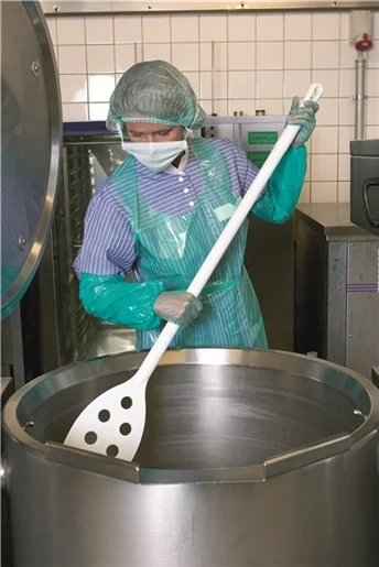 Весло-мешалка предназначено для перемешивания продуктов при температуре до 100 °C. Ручка с мягкой и гладкой поверхностью хорошо удерживается в руке. Перфорации позволяют снизить сопротивление вязких продуктов при перемешивании.