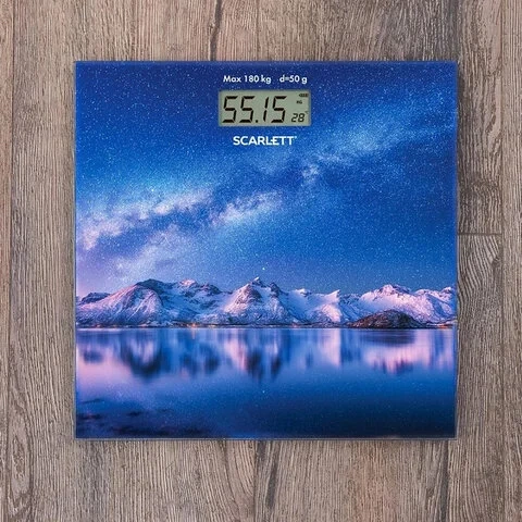 Весы напольные SCARLETT SC-BS33E022, электронные, вес до 180 кг, квадратные, стекло, звездное небо